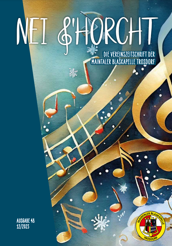 „Lange Zeit haben wir nun keine Nei g’horcht mehr produziert. Es gab einfach so viel Anderes zu tun. Aber hier kommt pünktlich zu Weihnachten die neueste Ausgabe quasi als unser Geschenk an Euch! Denn anders als bei manchem Musikverein, der in der Corona-Zeit aufgegeben und zugemacht hat, sind die Maintaler mit einem Zuwachs an Mitgliedern aus dieser Phase herausgekommen. Sogar ein neues Orchester, die Erwachsenenbläserklasse „Fei Echt“ wurde gegründet und erhält noch immer neuen Zuwachs. Aber auch im Hauptorchester durften wir viele neue Musiker begrüßen. Davon erzählen die Interviews und ein Vorstellungstext über unsere „alten“ Jungmusiker.“